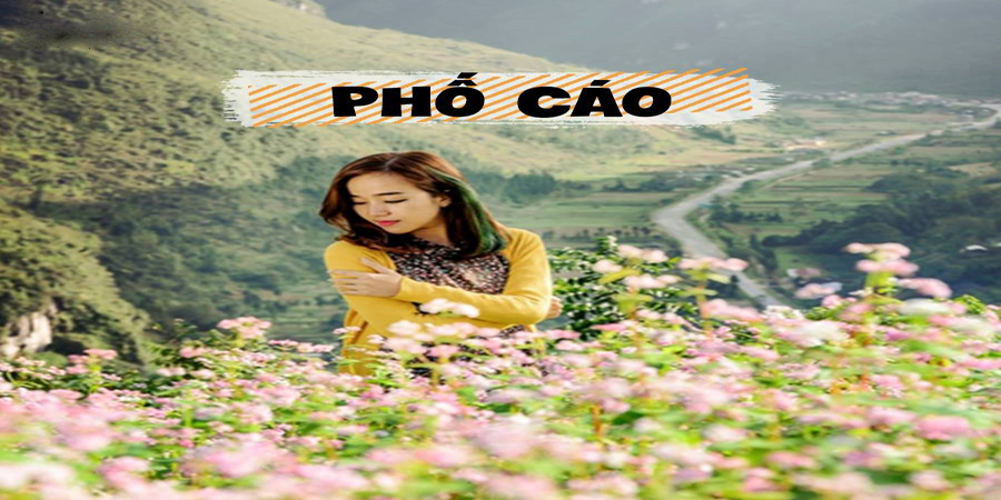 Phố Cáo là một xã nằm ngay trên Quốc lộ 4C, cách huyện Đồng Văn hơn 20km. Nếu như bạn đến du lịch Hà Giang mà chưa đếm với nơi đây thì  “coi như chưa tới Hà Giang". Khi đặt chân đến Phố Cáo sắc nắng nhẹ của những ngày cuối thu hòa quyện cùng sắc tím hồng của hoa tam giác mạch khiến bạn cảm thấy lòng mình thanh thản và yên bình đến lạ kỳ.  Nếu chịu khó đi sâu vào bên trong, khu vực gần sát vách núi nơi đây cũng có những thảm hoa tam giác mạch tuyệt đẹp.