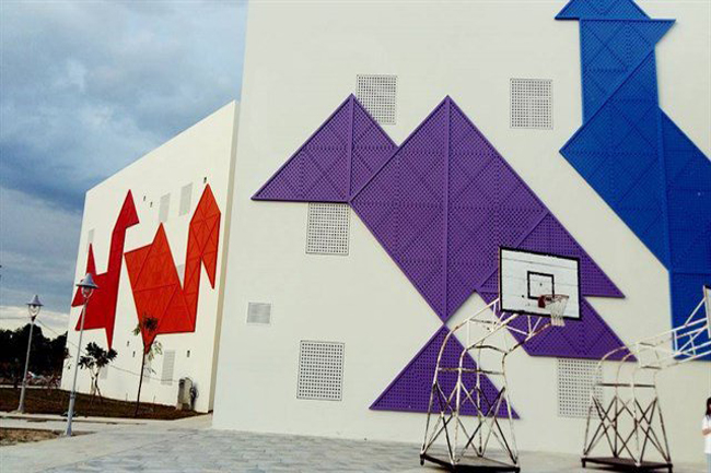 Các mặt đứng được trang trí bằng hình các con thú xoay quanh công trình với những gam màu nổi bật và ấn tựơng.