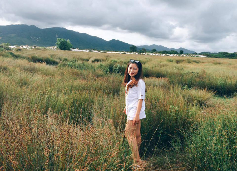 Với phông nền tự nhiên đẹp như tranh vẽ, lãng mạn giữa mênh mông đất trời, cánh đồng cỏ thu hút rất nhiều bạn trẻ đến chụp hình.