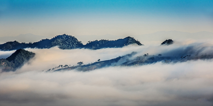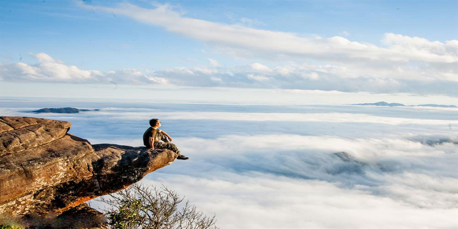 Điều đầu tiên bạn thấy được khi đặt chân đến đỉnh Pha Luông chính là khung cảnh hùng vĩ với những dải núi uốn lượn quyện với làn mây kỳ ảo. Đứng trên đỉnh núi chênh vênh, bạn mới cảm nhận được từng làn gió mát lành chạm nhẹ vào nước da, một cảm giác khoan khoái, dễ chịu. Chỉ cần bạn vươn tay ra thôi cũng có cảm giác như mình đang chạm vào biển mây rồi. Lúc này hãy để cho tâm trí bạn trôi theo mây trời, hãy để bản thân tìm đến mộng mơ mà mình đã lãng quên bao lâu nay.
