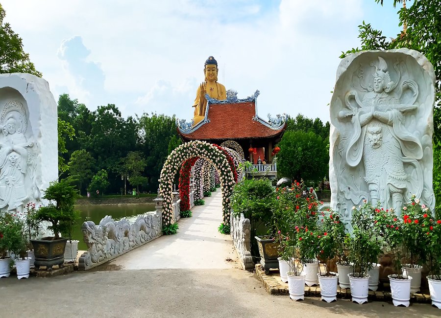 Tới đây, du khách như lạc vào chốn thần tiên yên bình thanh tịnh, cây cối xanh tươi, hoa thơm ngào ngạt khắp bốn mùa càng khiến du khách phật tử gần xa nô nức tìm về.