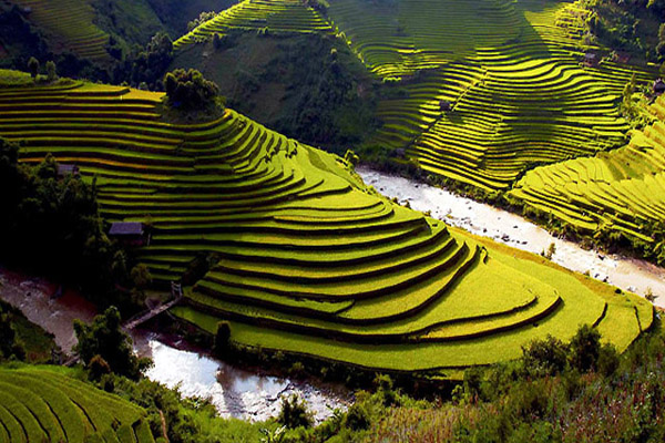 Tour Mù Cang Chải (Yên Bái) Giữa thu, núi rừng hiện lên như một bức tranh với những thửa ruộng bậc thang vàng óng hút tầm mắt. Những thửa ruộng bậc thang tầng tầng, lớp lớp như những nấc thang khổng lồ bắc lên trời, tựa những mâm xôi vàng.