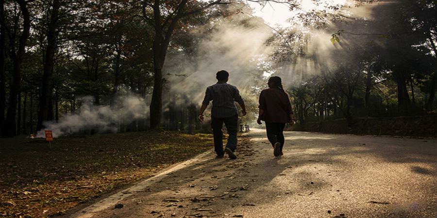 Càng lên cao, đường càng dốc và sương khói thì bảng lảng tan trong nắng. Một buổi chiều thu trên lưng núi, thấy nắng rọi những ray sáng xuống con đường nhỏ. Cảm giác thật nhẹ nhõm và thư thái.