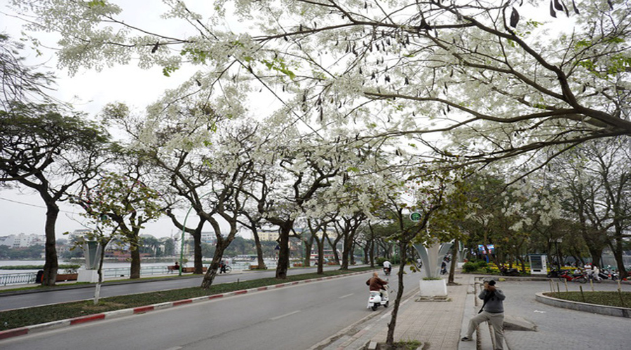 Không rực rỡ như phượng vĩ, không tím biếc như bằng lăng, cũng không ngạt ngào như hoa sữa… Sắc trắng nguyên sơ của hoa sưa đem đến cho lòng người một cảm giác tươi mới, thanh khiết. Giữa nhịp sống náo nhiệt của thủ đô, sắc trắng hoa sưa làm cho mọi thứ trở nên yên bình và nhẹ nhàng một cách lạ lùng.