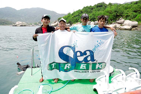 Đội chiếc mũ lặn Sea-Trek, du khách trải nghiệm cảm giác đi bộ dưới đáy biển sâu 5-6 m, ngắm những rạn san hô và hệ sinh thái biển chắc chắn sẽ là một trải nghiệm vô cùng đặc biệt ở Cù Lao Chàm, Hội An.
