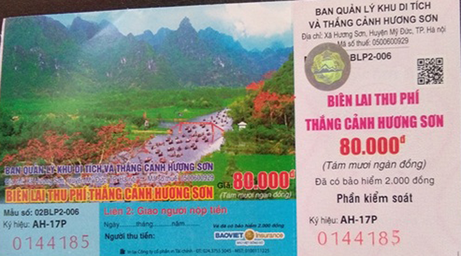 Giá vé tham quan thắng cảnh, đi đò ở Chùa Hương