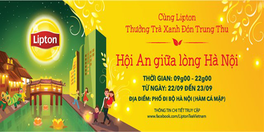 Phố cổ Hội An giữa lòng Hà Nội là một sự kiện của nhãn hiệu trà Lipton với chủ đề “Cùng Lipton thưởng Trà Xanh đón Trung Thu tại Hội An giữa lòng Hà Nội" sẽ được chính thức diễn ra trong 2 ngày 22 - 23/09/2018 tại phố đi bộ Hồ Gươm - Hà Nội.
