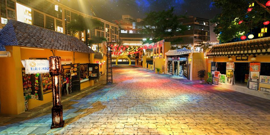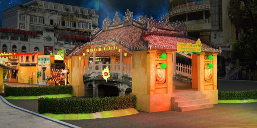 Phố cổ Hội An sẽ được tái hiện lại một cách chân thực với nhiều không gian khác nhau. Bạn có thể khám phá con đường lồng đèn huyền ảo rực rỡ sắc màu hay một không gian cổ xưa được thể hiện qua những căn nhà màu vàng đậm đặc trưng của mảnh đấy phố cổ. Giờ đây bạn cũng không cần phải đi đâu xa xôi mà cũng có thể thỏa thích check-in Chùa Cầu, chợ phố Hội... ngay giữa lòng Hà Nội.
