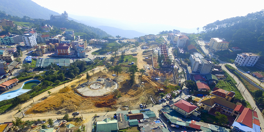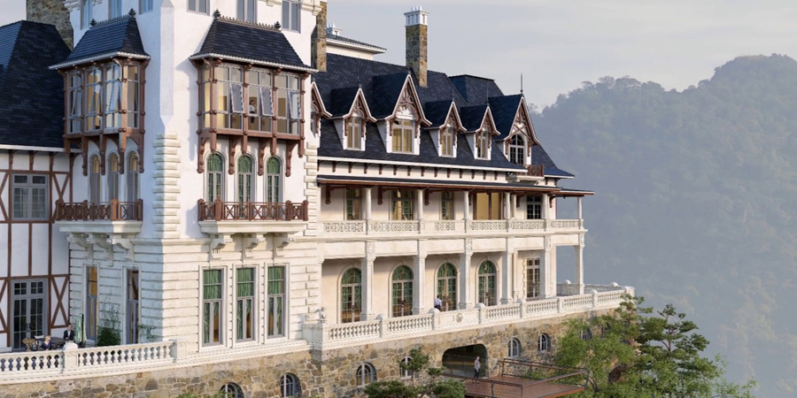 Lâu đài Tam Đảo tọa lạc ở vị thế đắc địa trên đỉnh núi, từ cung đường phía dưới đi lên, bạn có thể quan sát thấy một lâu dài cheo leo đang được dựng lên đồ sộ, nguy nga.