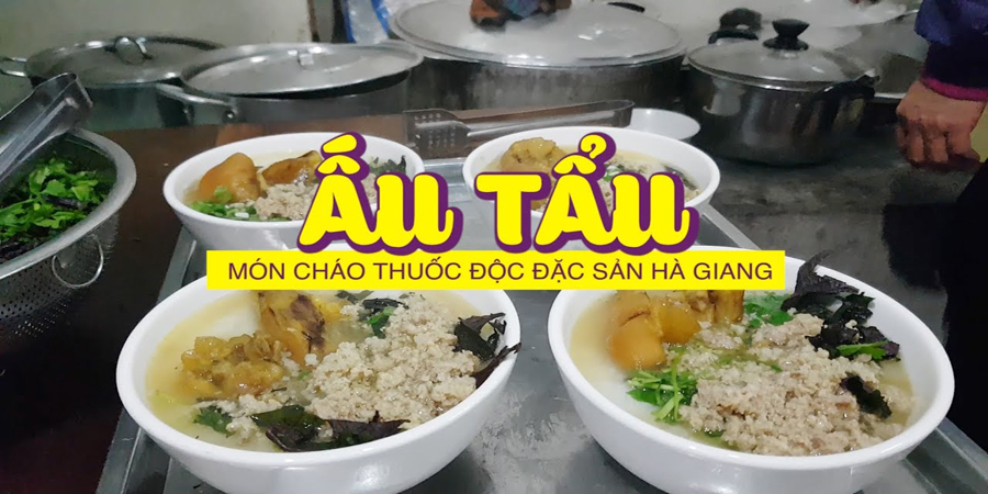 Đến du lịch Hà Giang một món ăn mà bạn chắc chắn không thể bỏ qua đó chính là cháo ấu tẩu. Củ ấu tẩu được ngâm với nước gạo và ninh đến khi bở tơi, nấu cùng gạo tẻ, nếp cái, nước hầm chân giò, thịt nạc băm cùng chút rau thơm khiến vị thơm ngất ngây. Cháo ấu tẩu có vị đắng, ăn ngon nhất khi trời lạnh, ngoài ra còn có tác dụng giải cảm.