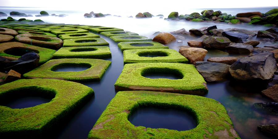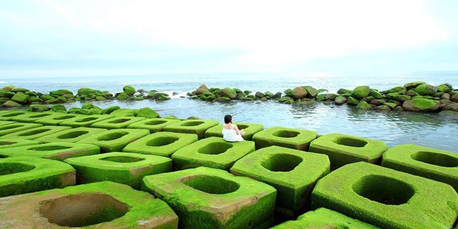 “Thiên đường đá rêu xanh” được biết đến với những tảng đá rêu xanh ngắt tại Kè chắn sóng – tọa lạc tại xóm Rớ, phường Phú Đông, thành phố Tuy Hòa, tỉnh Phú Yên. Những tảng đá nơi đây được rêu xanh bám chặt vào đá và đẹp hơn cả khi từng con sóng vỗ vào bờ hòa quyện thêm màu ánh bạc của nước biển khiến nơi đây đẹp hơn bao giờ hết.