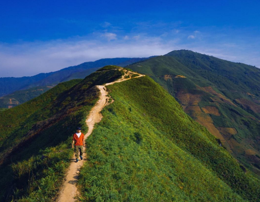 Một trong những điểm đến đặc biệt cuốn hút các bạn trẻ thời gian gần đây chính là dãy núi 'sống lưng khủng long' nằm cách trung tâm xã Háng Đồng chừng 5km.