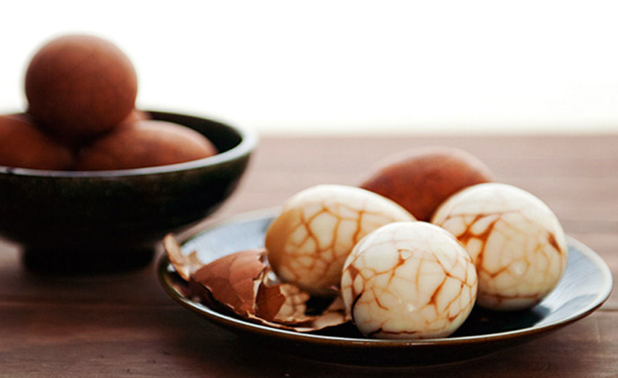 Đây là một trong những món ăn độc đáo của người Sapa. Món trứng sau khi luộc xong được đập dập vỏ, rồi nấu trong thuốc Bắc ít nhất 8 giờ. Khi ăn, trứng sẽ rất chắc, thơm mùi thuốc và có những đường vân vô cùng đẹp mắt. Khi ăn, lòng trắng trứng ngả màu nâu, thơm mùi thuốc, ăn rất lạ miệng. Món này có thể ăn vặt, rất bổ dưỡng.