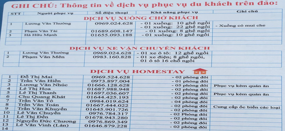 Điều thú vị và đặc biệt ở Cái Chiên là bạn sẽ được nghỉ ở những phòng container rực rỡ sắc màu với tiện nghi và độc đáo bên cạnh bờ biển. Mức giá dao động khoảng 350.000 đồng/đêm, phòng có 2 giường và có thể ngủ được 4 người. Đối với phòng có điều hòa và WC khép kín, 2 giường thoải mái là 700.000 đồng cho tour Cái chiên 3 ngày 2 đêm. Lưu ý, để thuê phòng nên gọi để đặt trước. Ngoài ra ở Cái Chiên cũng có nhiều nhà nghỉ lưu trú giá giao động từ 400.000 – 700.000 tùy thuộc vào thời điểm bạn đi. Để thêm thông tin bạn có thể liên hệ một số nhà nghỉ, khách sạn số điện thoại như dưới ảnh.