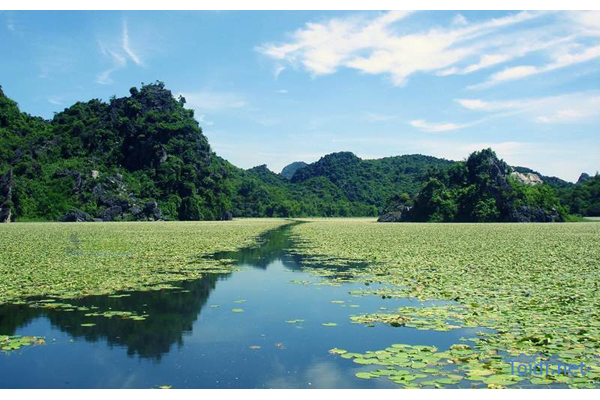 Phong cảnh Hồ Quan Sơn đẹp bởi sự pha quyện giữa những ngọn núi đá vôi lừng lững bên mặt Hồ; trên mặt nước là những thảm thực vật phong phú như Trang Trang, Sen... Nơi đây sở hữu gần 20 ngọn núi lớn, nhỏ kéo dài ôm ấp các hồ nước, cùng nhiều vách đá dựng đứng nằm giữa lòng hồ như những bán đảo nhỏ.
