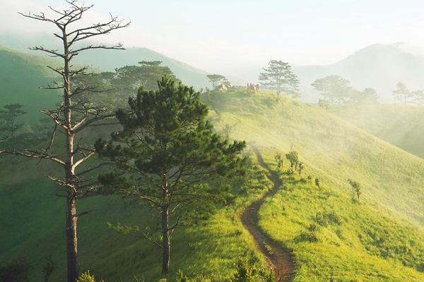 Giữa đại ngàn trập trùng sóng mây là những dãy núi nhấp nhô. Khung cảnh khiến người ta có cảm giác nơi đây tựa như một bờ biển hoang sơ tuyệt đẹp với sóng mây cùng bầu trời trong xanh, không khí mát lành. Những con đường trên sóng mây xuyên qua núi, qua khu rừng huyền bí và đồng cỏ bao la khiến những đôi chân lữ hành quên đi mỏi mệt…