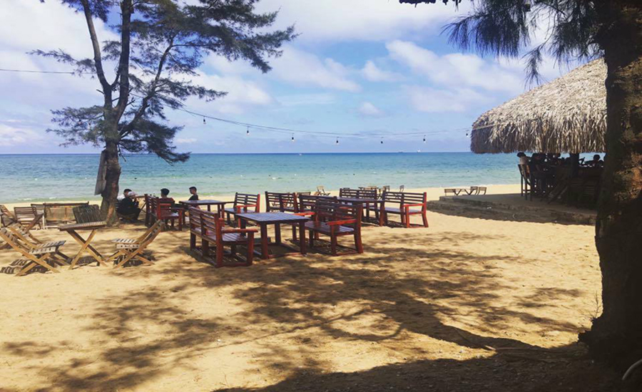 Khu nghỉ dưỡng lí tưởng nhất trên đảo là khu homestay container đủ màu sắc, nhìn rất dễ thương, nằm ngay sát biển, xen kẽ giữa những hàng phi lao.