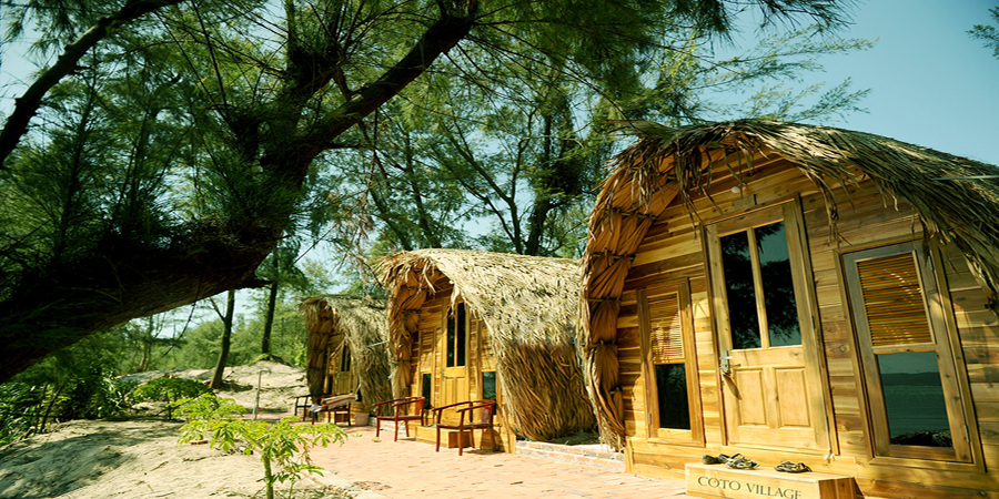 Coto Village nằm trên một trong nhưng bãi biển đẹp nhất Cô Tô - bãi biển Hồng Bàng. Kiến trúc của Côt Village rất đặc biệt với những căn bungalow bằng gỗ hình mái vòm, trên mái được lợp lớp lá rất mộc mạc giúp bạn có thể đắm mình vào thiên nhiên.