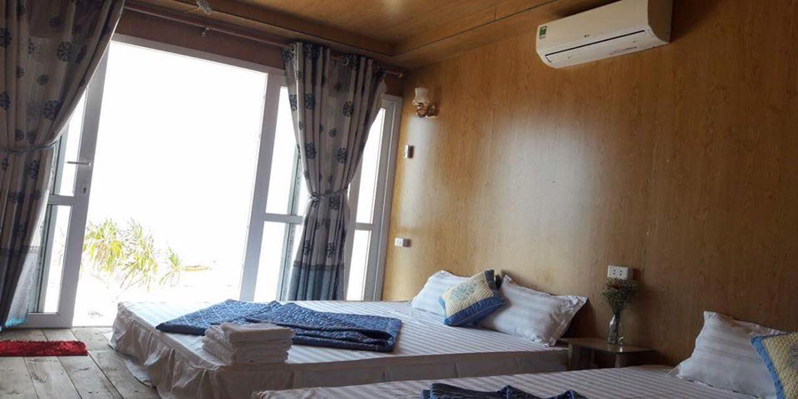 Với thiết kế là những căn nhà gỗ bungalow tuyệt đẹp  mang hơi hướng biển cả. Cùng 2 loại phòng dành cho các bạn lựa chọn đó là phòng 2 người và phòng 4 người với giá dao động từ 500k – 600k/1 đêm còn tùy vào thời điểm mà bạn thuê.