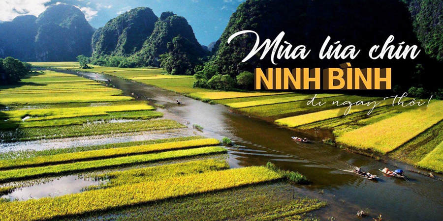 Khi thu sang, những ánh nắng cuối cùng của mùa hạ cũng là lúc mà Ninh Bình đẹp nhất với những thửa ruộng lúa chín vàng xen kẽ. Nếu như những thửa ruộng bậc thang hùng vĩ ở Mù Căng Chải hay những cánh đồng bát ngát thẳng cánh cò bay tại đồng Bằng Sông Cửu Long thì ở Ninh Bình bên cạnh dòng sông uốn cong mềm mại hay những dãy núi đá vôi nhiều hình thù khiến mùa lúa chín ở Ninh Bình đẹp nên thơ không lẫn vào đâu được.