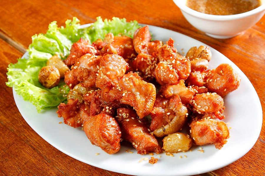 Chỉ với 100.000đ cho một suất người lớn mình đã được thưởng thức những món ăn nức tiếng của nơi đây: thịt lợn mán, cơm lam, cá suối… mà đặc biệt nhất là món bê chao thơm ngọt, giòn tan trong miệng vô cùng hấp dẫn. Tổng chi phí cho các bữa ăn là 330k/người/2 ngày.