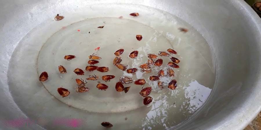 Để có thể bắt được nhiều bọ xít nhất thì người dân nơi đây sẽ sắm cho mình loại lưới có mắt mắt nhỏ  nhất và dày nhất để bảo vệ cây – quả.  Sau khi đã buông lưới việc vần làm tiêp theo là rung cành cây hoặc dùng sào rung nhẹ từng chùm quả khi đó bọ xít thấy động và lên sẽ rơi xuống đất. Sau khi bắt về để khử hết mùi hôi của bọ xít bạn đem ngâm vào nước muối loãng cho đến khi bọt khí từ bọ xít bốc lên phủ kín mặt nước rồi đem br đầu, cánh, ruột rồi đem chiên vàng. Để bọ xít giòn tan, bạn phải chiên trên chảo dầu sôi rồi đun với lửa to và đều tay đến khi vàng.