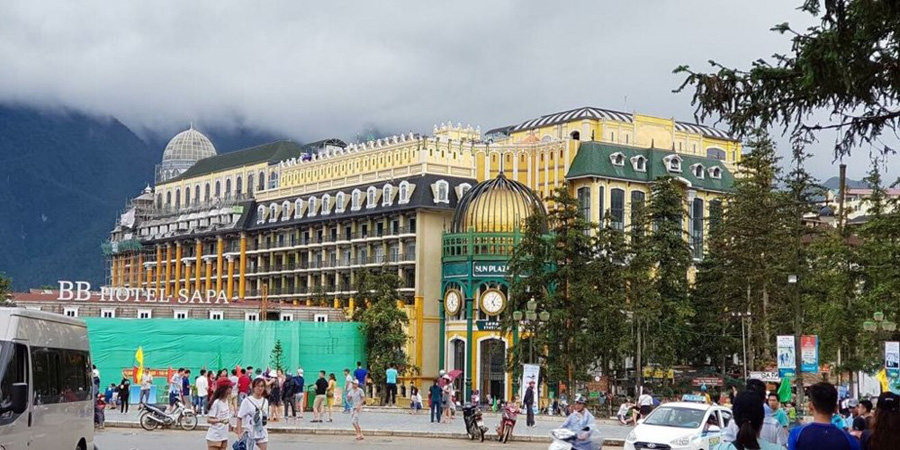 Toà nhà Sun Plaza với lối kiến trúc cổ mang phong cách châu Âu, phối màu nổi bật, được toạ lạc ngay giữa khu vực trung tâm Sapa đang là điểm đến hứa hẹn "gây bão" trên MXH.