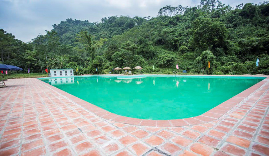 Trong khuôn viên khu nghỉ dưỡng, một bể bơi nhân tạo được xây dựng, nhằm đáp ứng tối đa nhu cầu vui chơi của khách.
