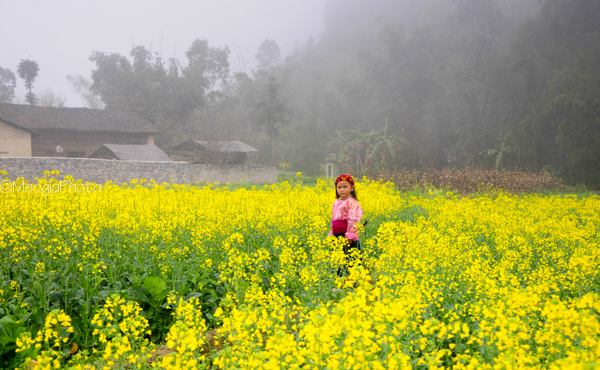 Mùa xuân ở Hà Giang còn đặc biệt bởi sắc vàng rực của hoa cải. Không chỉ ở trong vườn mà còn trong từng kẽ đá tai mèo, nơi khô cằn nhất cũng bừng lên sức sống mãnh liệt.