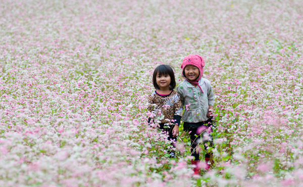 Mùa thu tháng 10 kéo dài đến tháng 12, tiết trời se lạnh, những vệt nắng vàng vấn vương trên mọi ngả đường là khi những cánh đồng hoa tam giác mạch nở rộ. Hoa phủ trên sườn đồi, hoa đan thành thảm trên những cánh đồng, hoa nở cạnh những cung đường uốn lượn, hay quanh những ngôi nhà tường trình xen lẫn những ụ rơm vàng... và hoa nở cùng nụ cười hồn nhiên của những đứa trẻ vùng cao đang đùa nghịch.