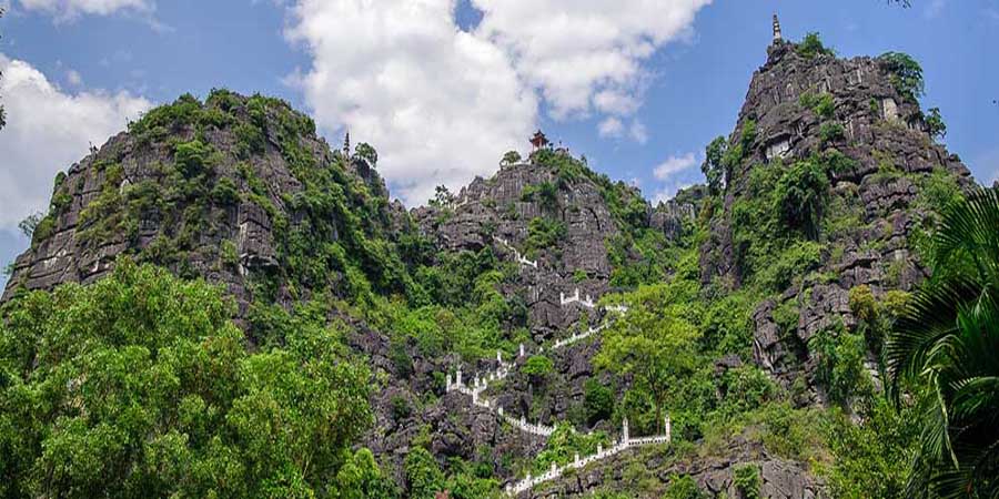 Hang Múa – điểm du lịch hấp dẫn mà bạn không thể bỏ qua tại Ninh Bình. Từ xa bạn đã có thể chiêm ngưỡng những bậc đá trắng phau dẫn lối đến đỉnh núi, trông xa hệt như Vạn Lý Trường Thành thu nhỏ ở Việt Nam. Hai bên bậc thang là những đường trang trí công phu trên đá, với những con rồng hoặc phượng được chạm khắc đúng với hình tượng rồng và phượng oai phong, sắc nét và đẹp mắt.