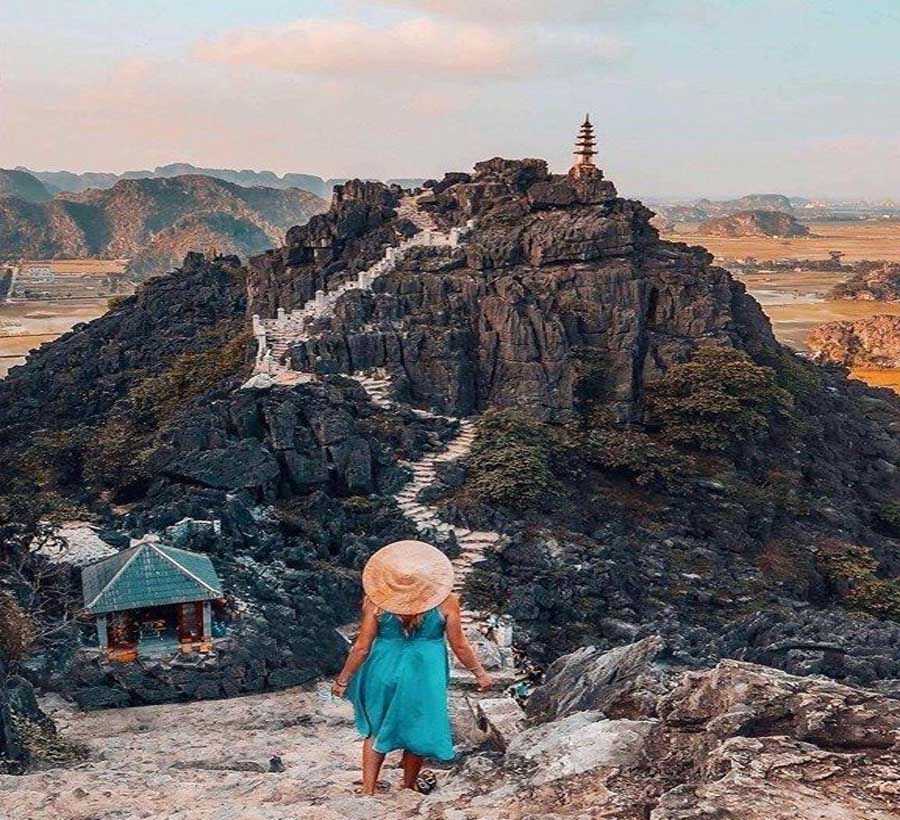 Để lên được tới Hang Múa, bạn phải chinh phục 486 bậc thang. Sau khi lên đến đỉnh, bạn sẽ được chiêm ngưỡng vẻ đẹp hùng vĩ của Ninh Bình, và đặc biệt khi lúa chín nơi đây là điểm đến không thể bỏ qua của hầu hết các du khách khi đến du lịch Ninh Bình.