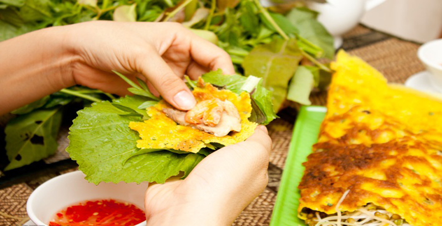 Bánh xèo Phú Quốc cũng giống như ở các nơi khác tuy nhiên người dân nơi đây cho thêm chút dừa nạo nên có vị beo béo rất ngon
