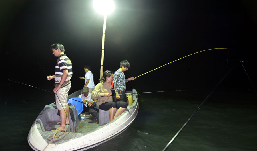 Trải nghiệm câu mực đêm trên đảo Cái Chiên
