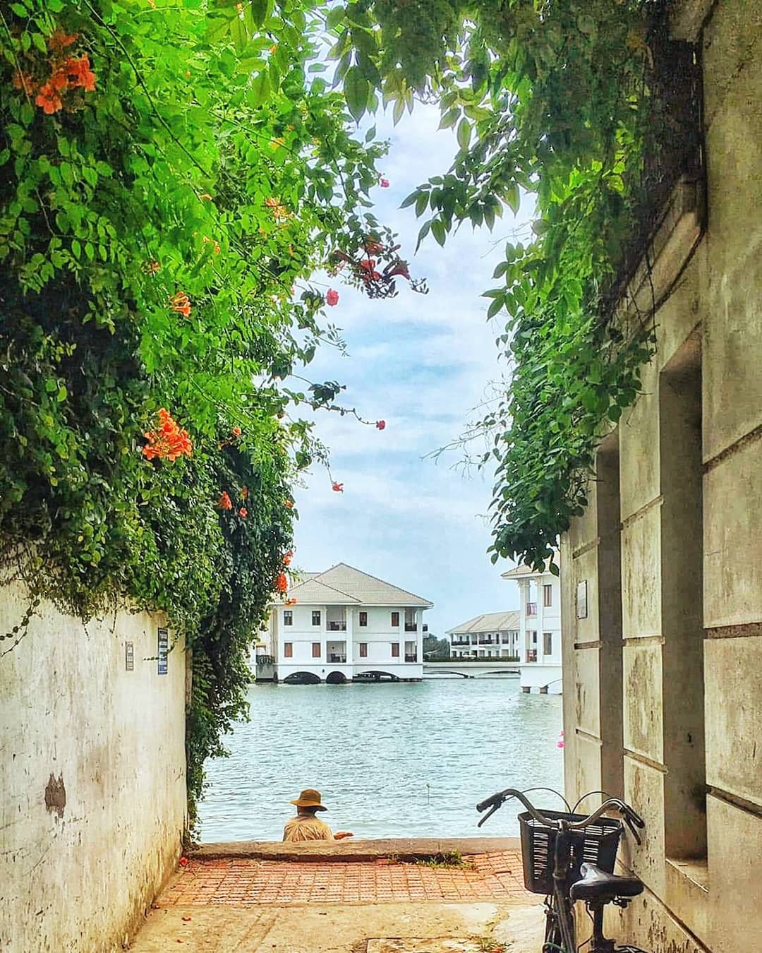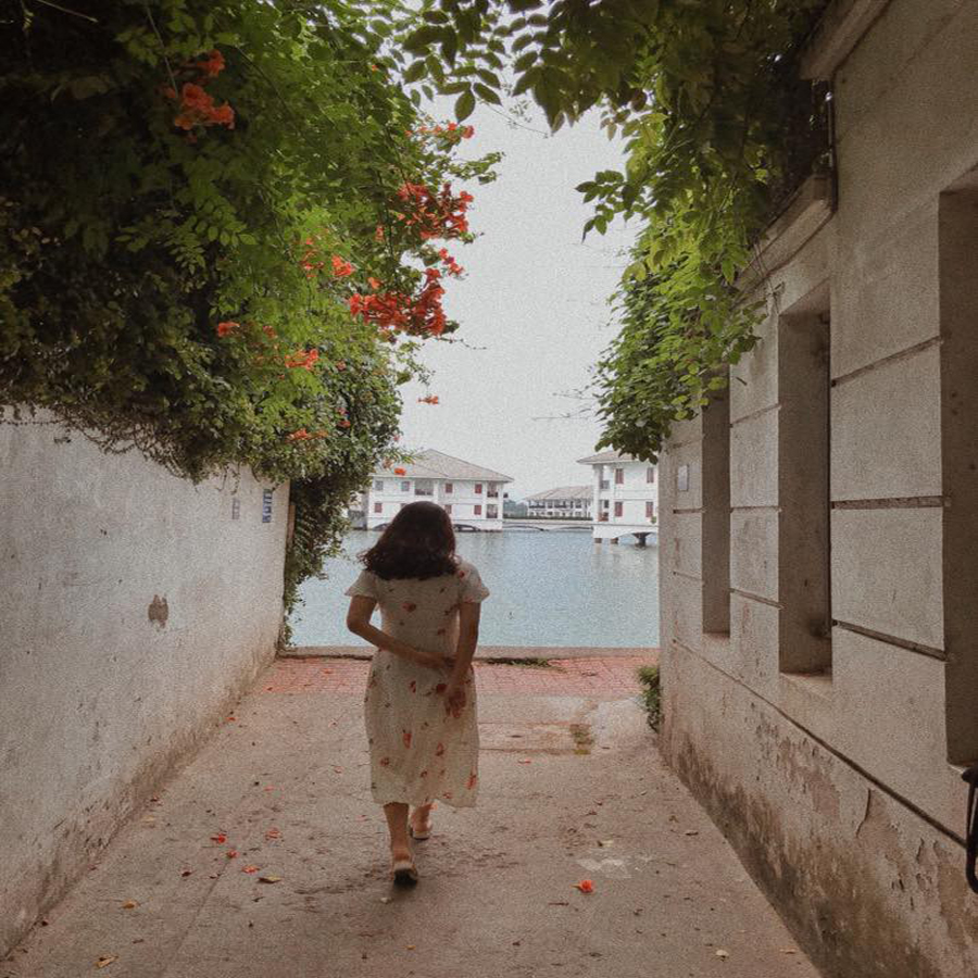 Con hẻm nhỏ với view nhìn thẳng ra hồ cùng những block màu trăng bồng bềnh trên mặt nước cùng phần tường cũ kỹ điểm xuyết dàn dây leo, hoa cỏ chắc chắn hớp hồn bạn ngay từ cái nhìn đầu tiên đó nhé! Hồ Tây rộng lớn mà lại có một góc nhỏ lãng mạn đến thế này! Nếu bạn đến đây vào buổi tối trông sẽ “chill” hơn buổi sáng đó nhé!