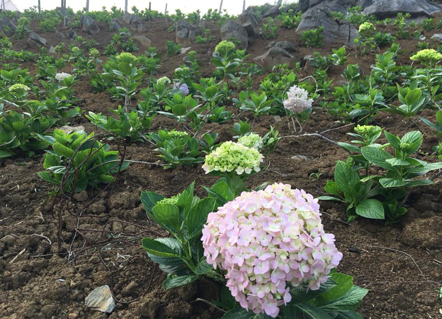 Vườn Mộng Mơ đang đặc trưng của vùng rừng núi Tây bắc và đặc biệt có sự xuất hiện loài hoa nổi tiếng của xứ Đà lạt mộng mơ là cẩm tú cầu.